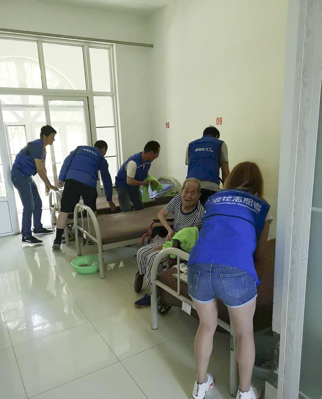 ? ? ? ?在福利院,浪花志愿者們挨個房間打掃衛生,細心整理床鋪,并為福利院人員換上新衣服。居住在這里的老人們表示每一次浪花志愿者來到這里,都給他們帶來溫暖,讓他們感受到這個世界的美好。整個福利院充斥著歡聲笑語,愛心也在笑中蔓延。